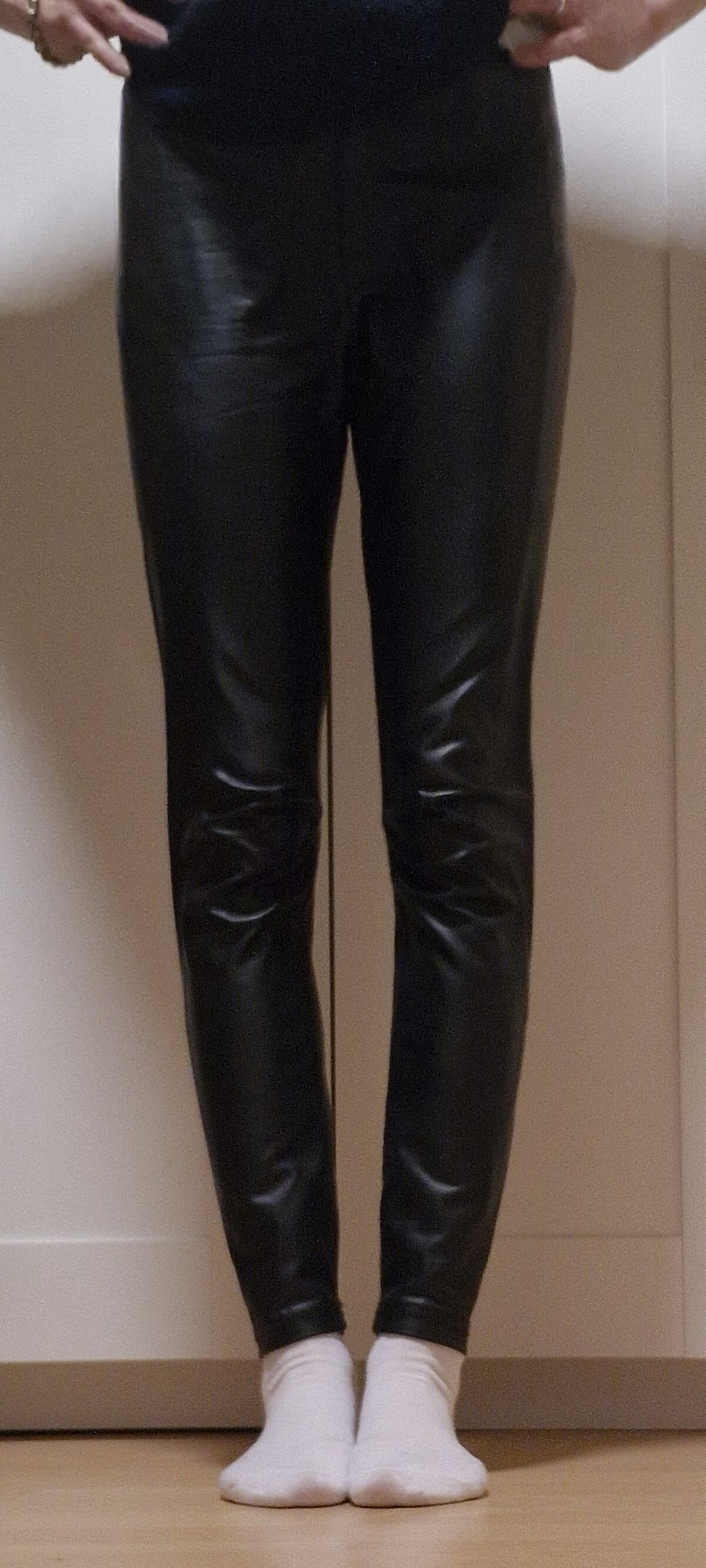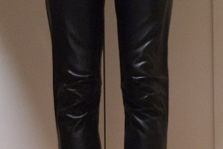 Ich biete dir meine getragenen Leggins im Leder Look in Gr.S mit meinem weiblichen Duft an.
